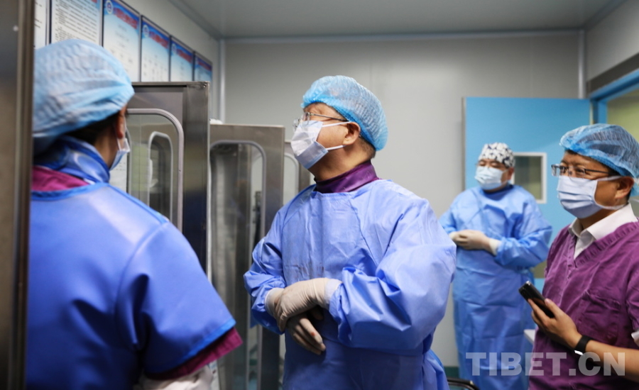 圖為首都醫(yī)科大學(xué)附屬北京安貞醫(yī)院心內(nèi)科副主任、主任醫(yī)師陰赪茜(中)趕赴阿壩州人民醫(yī)院手術(shù)救治急性心?;颊?,術(shù)前查看有關(guān)手術(shù)器材 攝影:劉莉