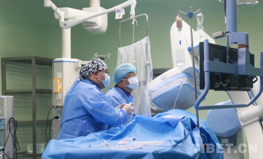 圖為陰赪茜(右)趕赴阿壩州人民醫(yī)院救治急性心?;颊?,在阿壩州人民醫(yī)院心內(nèi)科主治醫(yī)師孫壘協(xié)助下為患者手術(shù) 攝影:劉莉