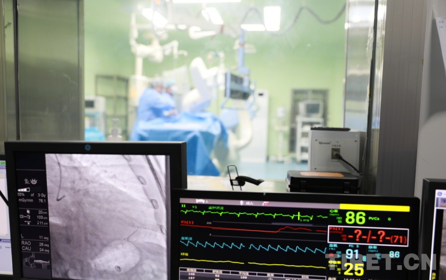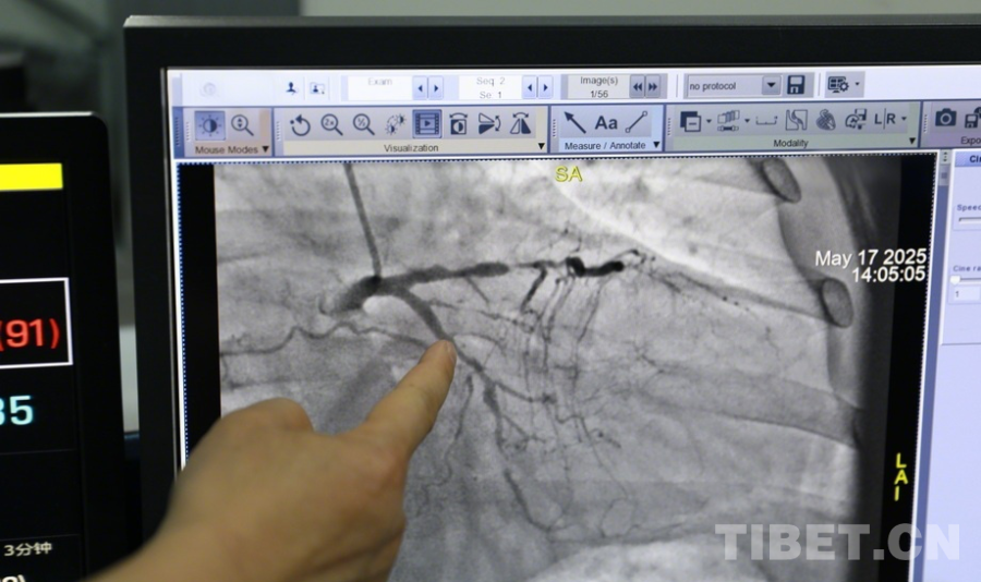 圖為陰赪茜趕赴阿壩州人民醫(yī)院手術(shù)救治急性心?;颊撸聊簧巷@示出患者心臟血管多處問題嚴(yán)重 攝影:劉莉