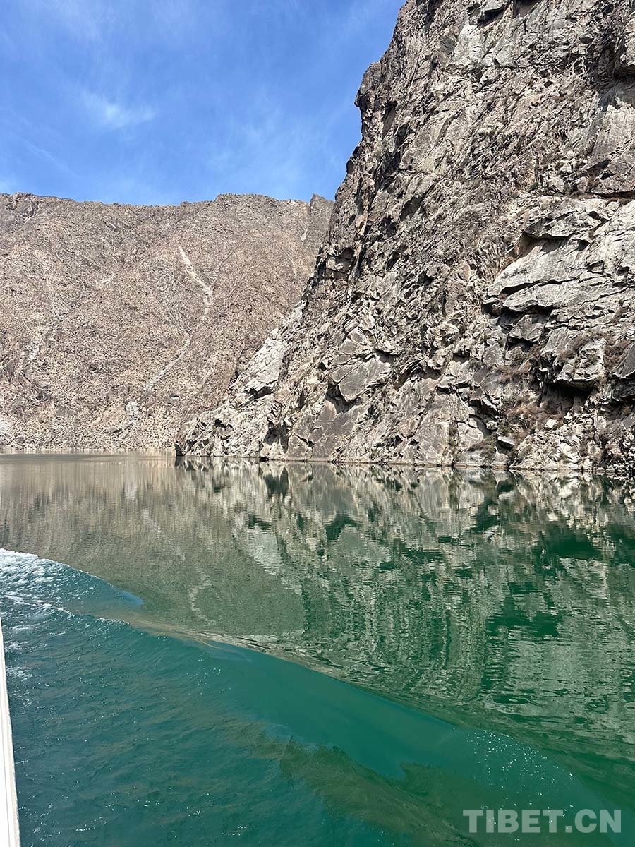 圖為乘坐游船穿行在龍羊峽間,湖水清澈見底,兩側(cè)崖壁上偶爾會有一閃而過的各類野生動物 攝影:畢然