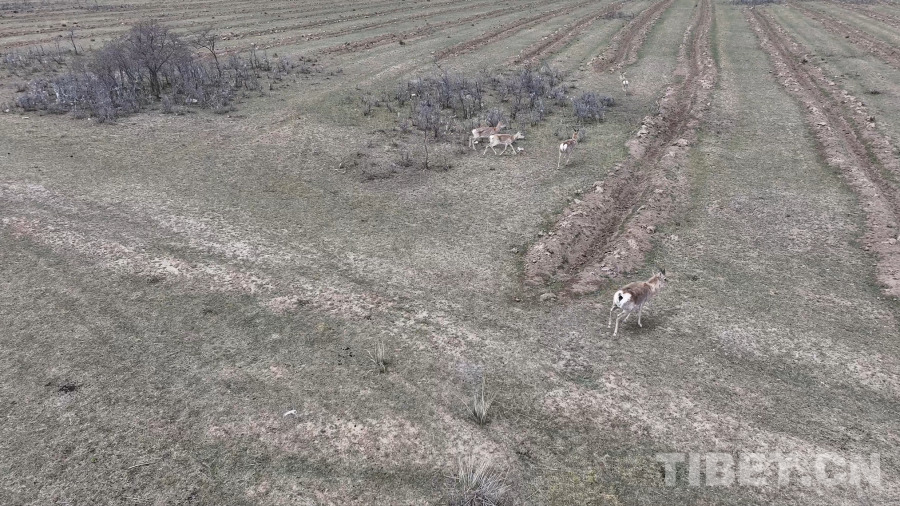 圖為無(wú)人機(jī)捕捉到的珍貴的野生普式原羚影像,奔跑時(shí),尾部標(biāo)志性的“心形白斑”清晰可見 青海省文旅廳供圖