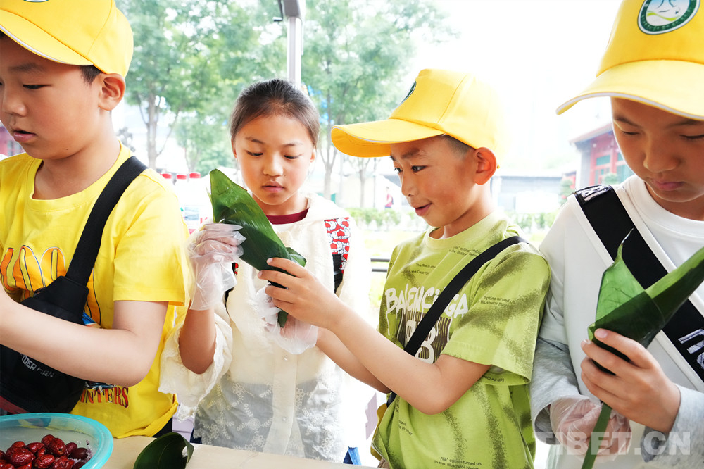 圖為來自西藏昌都的小學(xué)生學(xué)習(xí)包粽子 攝影:王茜