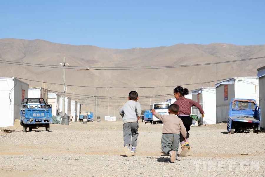 圖為日喀則市定日縣長所鄉(xiāng)雜村安置點(diǎn),孩子們正在嬉戲打鬧 攝影:邊子捷
