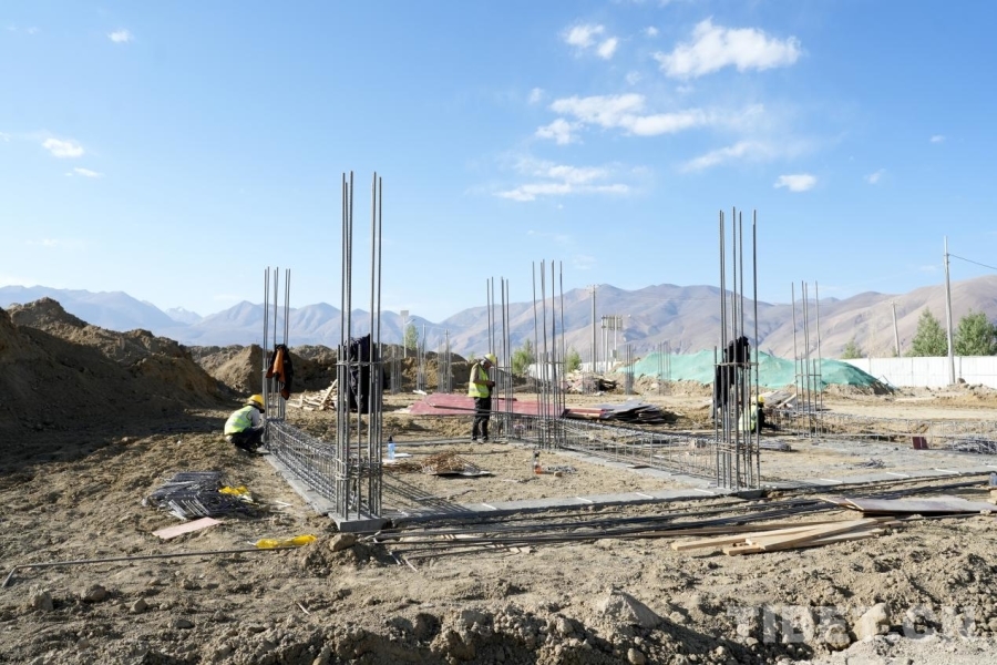 在雜村,一座座安置板房間,婦女們圍坐一起編織氆氌,孩子們玩鬧嬉戲,時(shí)有工作人員入戶進(jìn)行安全排查、普法宣傳,生活一如往常平靜安寧。而在距離安置點(diǎn)不遠(yuǎn)處的工地上,卻呈現(xiàn)出一片繁忙的景象——運(yùn)輸車穿梭其間,機(jī)器轟鳴,工人忙著將箍筋固定在地基中,雜村重建工作正有序而迅速地推進(jìn)著。