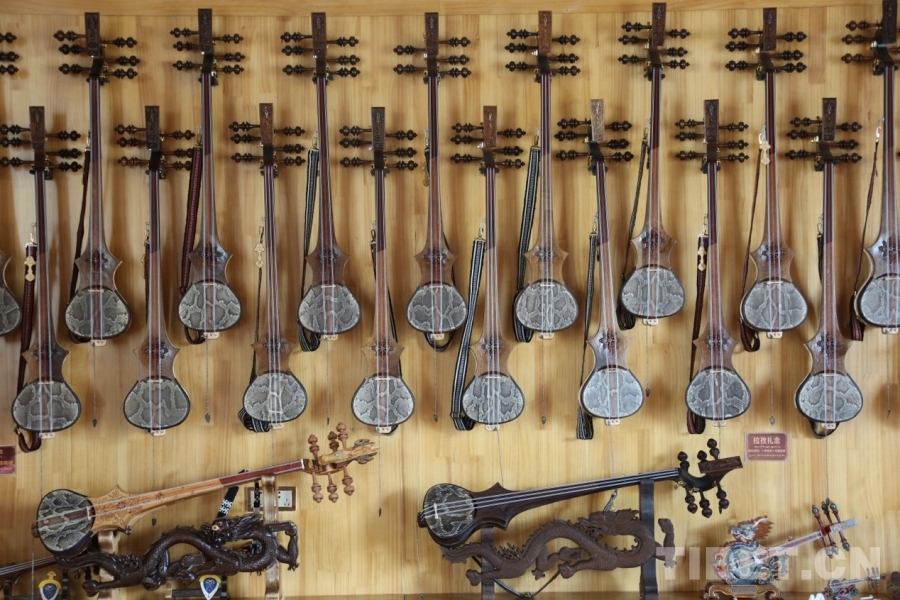 作為“堆諧之鄉(xiāng)”拉孜縣的代表性樂器,扎念琴制作已有數(shù)百年歷史。合作社負(fù)責(zé)人頓加介紹,一把純手工扎念琴需選用楊木做共鳴箱、花梨木制琴桿,經(jīng)過刨削、雕鏤、蒙皮等20余道工序,一個(gè)人耗時(shí)6天左右方能完成?!扒兕^雕馬象征吉祥,背面‘巴絡(luò)'凸紋既美觀又防滑,這些都是祖輩傳下的智慧?!比缃瘢@項(xiàng)非遺技藝通過“致富帶頭人+合作社+農(nóng)戶”模式,年生產(chǎn)扎念琴超500把,帶動(dòng)社員人均年收入達(dá)4.5萬元。