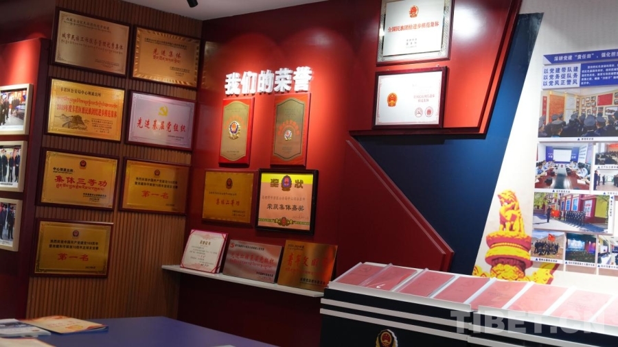 圖為中心壩派出所榮譽展示墻 攝影:德吉卓瑪