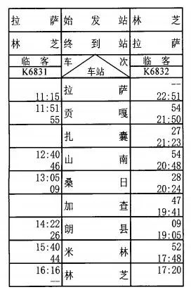 2025年7月16、18、20、21、23、25、27、28、30日、8月1、3、4、6、8、10、11、13、15、17、18、20、22、24、25、27、29、31日拉薩至林芝加開(kāi)K6831/2次臨時(shí)旅客列車(chē)。