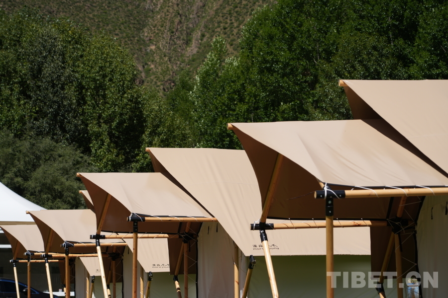 中國西藏網(wǎng)訊 站在觀景臺遠(yuǎn)眺,綠樹成蔭,一陣風(fēng)吹過,麥浪金黃;漫步色甫林卡,帳篷搭建得整整齊齊,牛羊悠閑地曬太陽;走進(jìn)望果賽馬場,當(dāng)?shù)厝罕娨言缭缵s來搭建帳篷,各家各戶其樂融融。