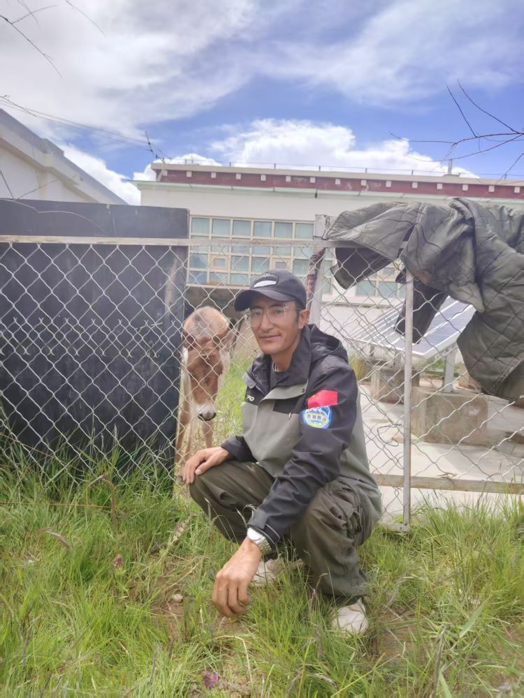 圖為被救助的小藏野驢與羅布玉杰管護站工作人員扎西羅布 攝影:王東
