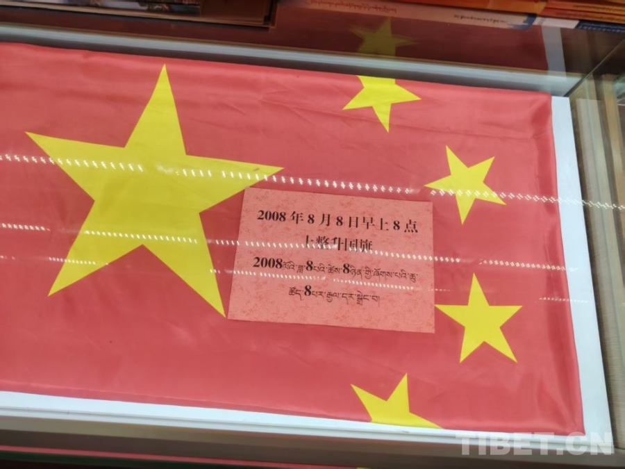 圖為古曲扎巴老人珍藏的2008年8月8日早8點所升的國旗 攝影:王東