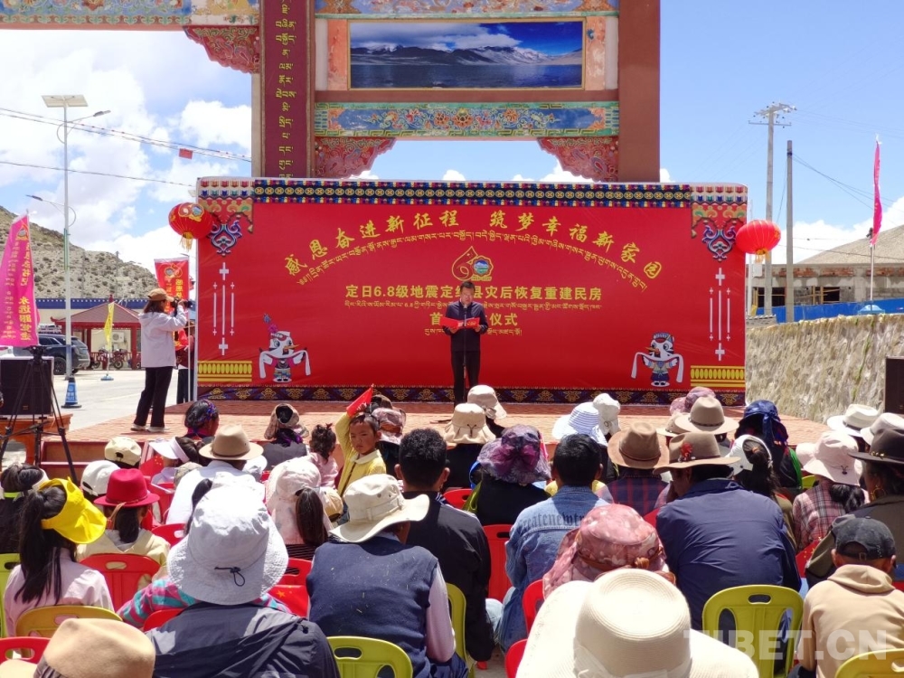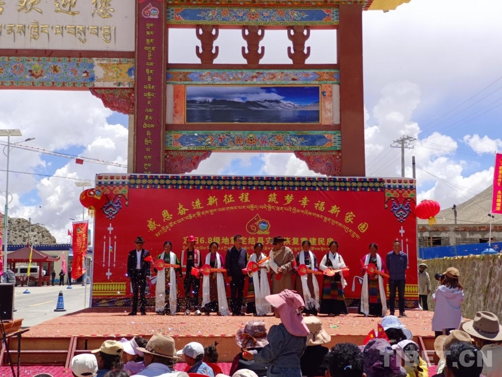 圖為榮貢村舉行定日6.8級(jí)地震災(zāi)后恢復(fù)重建民房首批入住儀式