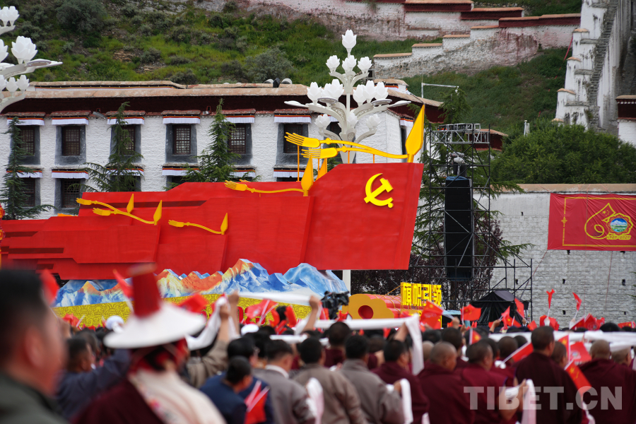 中國(guó)西藏網(wǎng)訊 西藏自治區(qū)成立60周年慶祝大會(huì)于8月21日上午10時(shí)在拉薩隆重舉行。伴隨著歡快的音樂(lè),熱烈歡騰的群眾游行在“旗幟引領(lǐng)”彩車的帶領(lǐng)下正式開(kāi)始。(中國(guó)西藏網(wǎng) 記者/王淑 馮重霖 劉莉 趙釗 姚浩然 楊眉笑 德吉卓瑪 趙振宇 賈華加 邊子捷 次旦拉姆 旦曲)