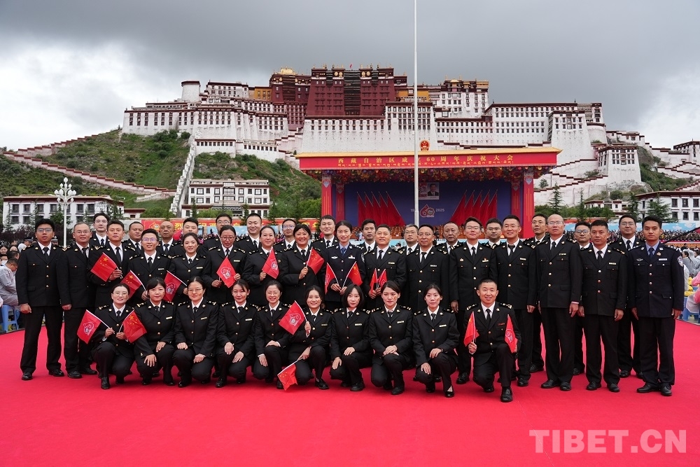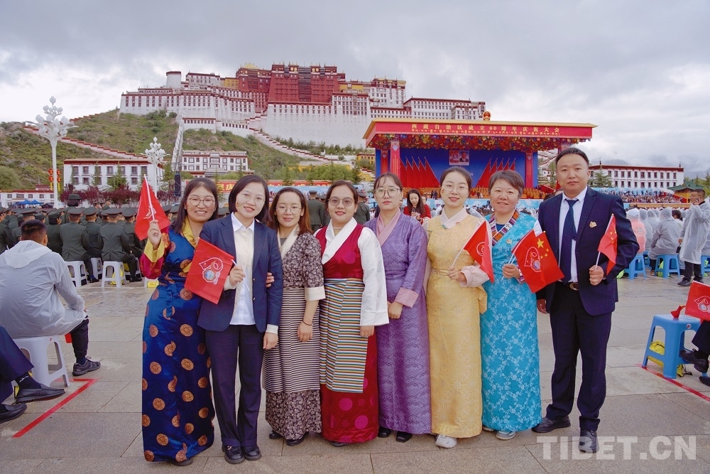圖為參加慶祝大會(huì)的拉薩海關(guān)工作人員留影 攝影:楊眉笑