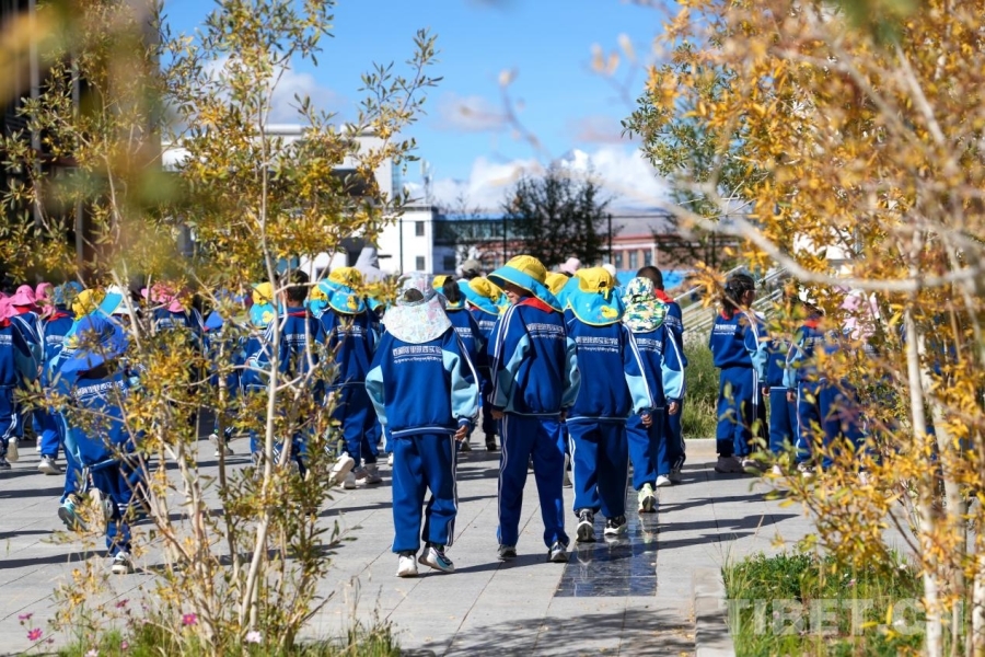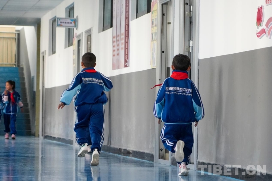 圖為在西藏阿里陜西實(shí)驗(yàn)學(xué)校,孩子們正成群結(jié)隊(duì)前往操場(chǎng) 攝影:邊子捷