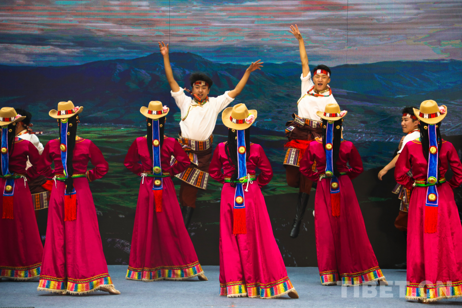 圖為活動(dòng)現(xiàn)場(chǎng)歌舞表演 攝影:龍真多吉