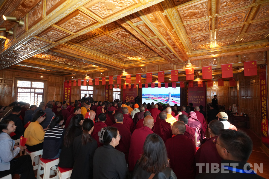 中國西藏網(wǎng)訊 9月3日上午,紀(jì)念中國人民抗日戰(zhàn)爭暨世界反法西斯戰(zhàn)爭勝利80周年大會(huì)在北京天安門廣場隆重舉行,以盛大閱兵儀式,同世界人民一道紀(jì)念這個(gè)偉大的日子,共同開創(chuàng)更加光明的未來。同一時(shí)刻,在云南省迪慶藏族自治州香格里拉市松贊林寺,130余名我國宗教界人士觀看大會(huì)直播,共同見證這一歷史性時(shí)刻,感受新時(shí)代中國國防力量,激蕩愛國愛教情懷。