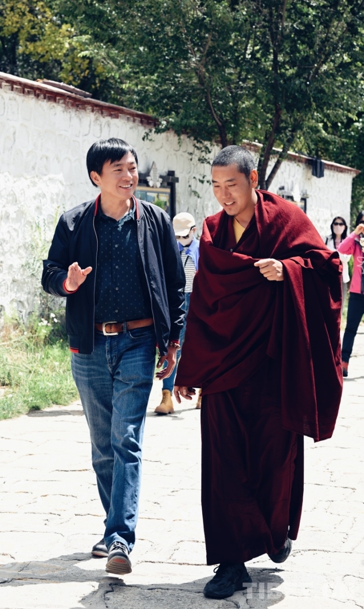 圖為沈衛(wèi)榮(左)與色拉寺僧人交談 圖片由受訪者提供