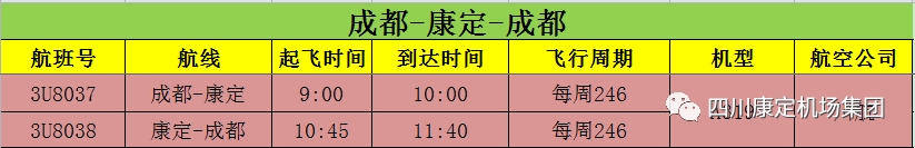 3月5日,記者從四川康定機(jī)場(chǎng)集團(tuán)獲悉,甘孜州內(nèi)康定、稻城、格薩爾三大機(jī)場(chǎng)航線(xiàn)航班已于日前陸續(xù)恢復(fù),調(diào)整后的航線(xiàn)航班為:成都—康定航班每周執(zhí)飛周二、周四、周六,特價(jià)機(jī)票單程低至399元,往返低至699元;成都—稻城航班每天1班;成都—格薩爾航班每周執(zhí)飛周一、周三、周五、周日。具體以預(yù)定時(shí)查詢(xún)?yōu)闇?zhǔn)。康定機(jī)場(chǎng)集團(tuán)航線(xiàn)航班查詢(xún)訂票熱線(xiàn):028—61512291。