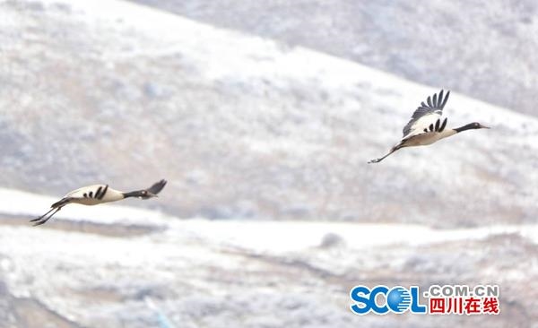 四川省若爾蓋2000多只黑頸鶴本月中旬前將全部南下越冬