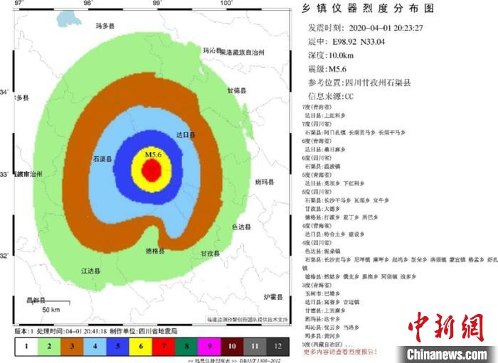 4月1日20時23分27秒,四川甘孜州石渠縣5.6級地震發(fā)生后,四川地震烈度速報與預(yù)警系統(tǒng)震后12秒發(fā)出報警信息,第一報5.0級,隨后3分08秒產(chǎn)出自動速報,部署于四川省通信管理局、成都鐵路局和四川省地震局等單位的預(yù)警終端發(fā)出報警,有力支撐了地震應(yīng)急響應(yīng)處置工作。