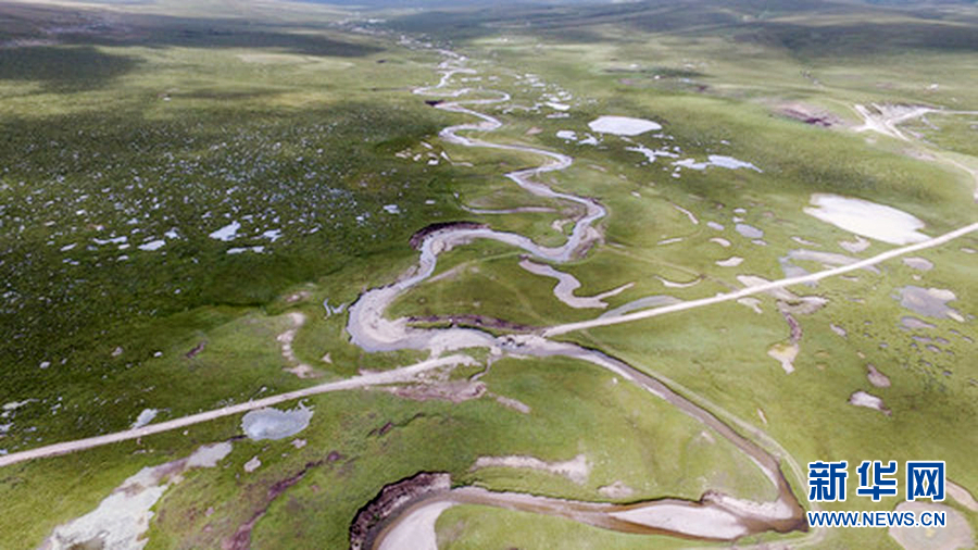 位于青海省玉樹藏族自治州雜多縣的長江南源當(dāng)曲河道(2019年8月6日無人機(jī)拍攝)。新華社 吳剛 攝