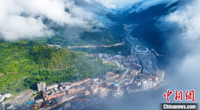 “跑馬溜溜的山上,一朵溜溜的云喲;端端溜溜的照在,康定溜溜的城喲……”6月22日,一場雨后,四川甘孜州康定市城區(qū)云霧繚繞,從空中俯瞰十分美麗。康定舊稱“打箭爐”,三山環(huán)抱,折多河穿城而過。是一座歷史悠久的高原古城,這里既是情歌的故鄉(xiāng),又是茶馬互市的重鎮(zhèn)。