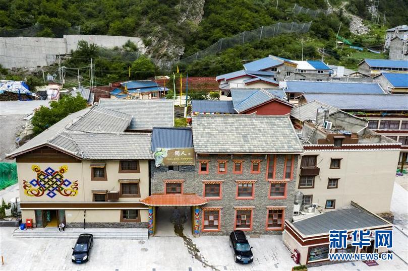 四川省阿壩藏族羌族自治州九寨溝縣漳扎鎮(zhèn)新建的用于旅游接待等功能的藏式風(fēng)格民居(無人機照片,6月18日攝)。新華社記者 沈伯韓 攝
