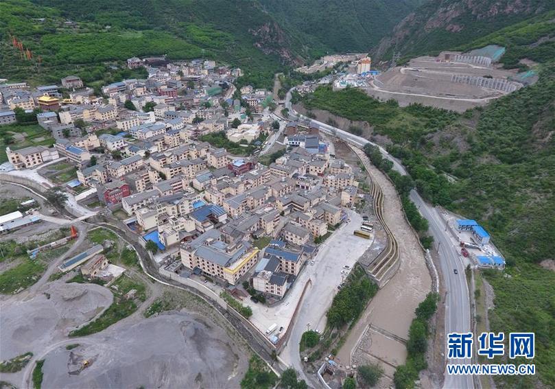 九寨溝地震震中九寨溝縣漳扎鎮(zhèn)新貌(無人機照片,6月18日攝)。 新華社記者 劉坤 攝