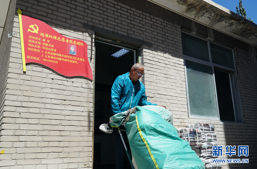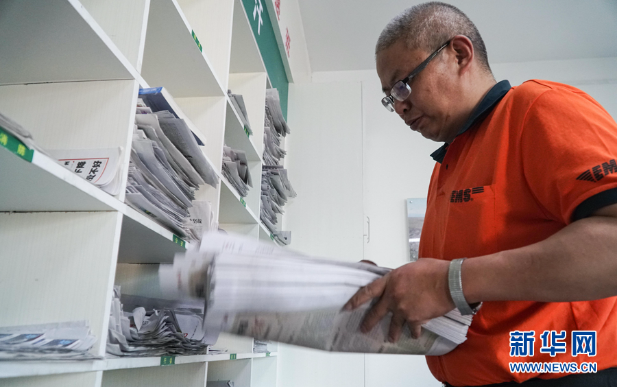 6月29日,中國(guó)郵政集團(tuán)有限公司格爾木市分公司的郵件分揀大院里,葛軍在整理報(bào)紙。新華社記者 耿輝凰 攝