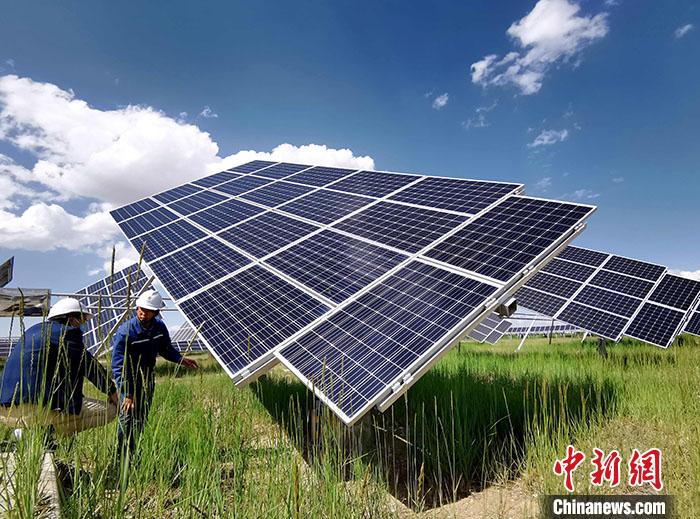 光伏發(fā)電企業(yè)不僅幫這片青藏高原腹地的昔日“草原”重新煥發(fā)生機,綠色清潔能源也從園區(qū)源源不斷向外輸送。