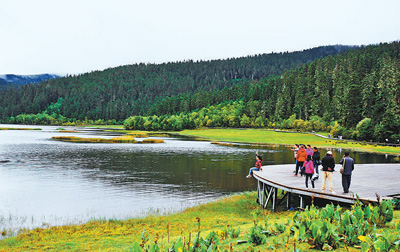 游客在普達(dá)措國家公園內(nèi)游覽。新華社記者 張譽(yù)東 攝