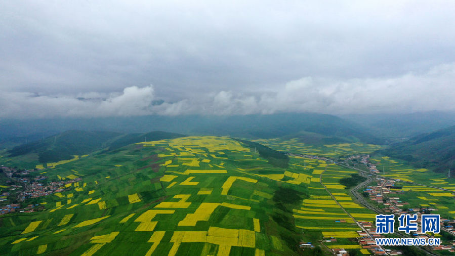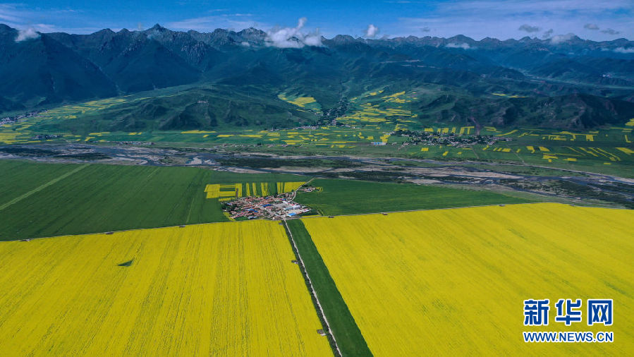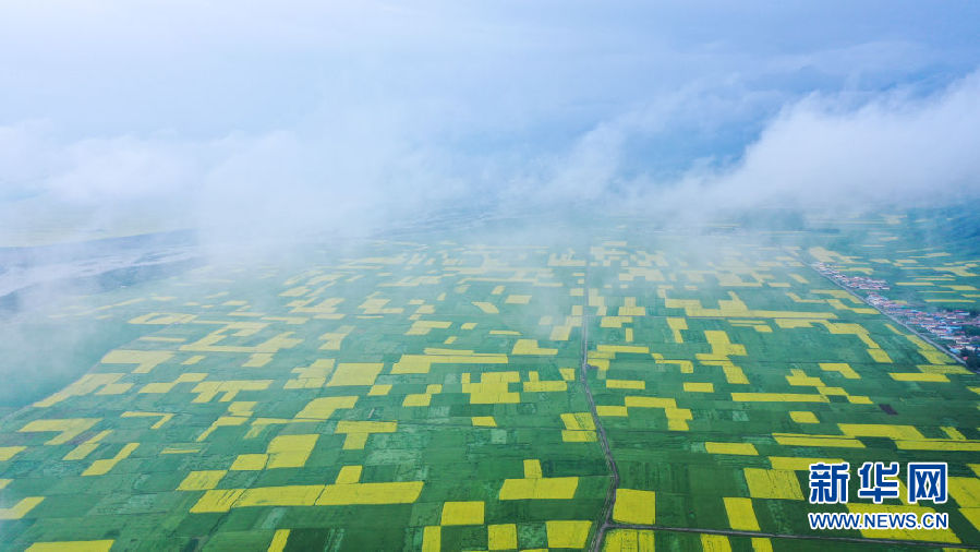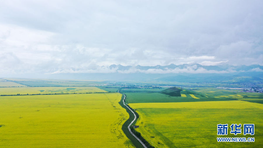 這是7月23日拍攝的門源回族自治縣境內(nèi)的油菜花(無(wú)人機(jī)照片)。新華社記者 吳剛 攝