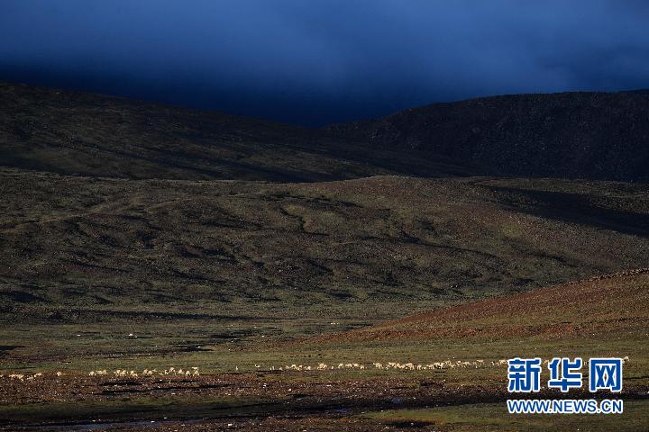 暮色漸濃,可可西里腹地的卓乃湖,空氣中透著寒意。一群群藏羚羊向湖畔山坳進發(fā),躲避寒風。