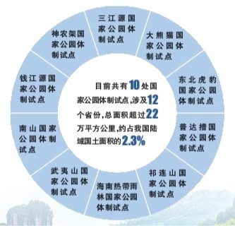 自2015年以來(lái),我國(guó)開展了東北虎豹、祁連山、大熊貓、三江源、海南熱帶雨林、武夷山、神農(nóng)架、普達(dá)措、錢江源、南山等10處國(guó)家公園體制試點(diǎn)。試點(diǎn)區(qū)將各級(jí)各類自然保護(hù)地整合劃入國(guó)家公園試點(diǎn)區(qū)范圍,對(duì)山水林田湖草等自然生態(tài)系統(tǒng)實(shí)行統(tǒng)一管理、整體保護(hù)和系統(tǒng)修復(fù)。