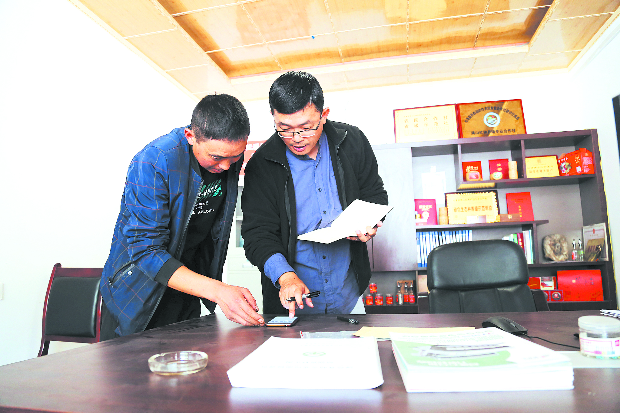 地里花椒采摘忙,村里花椒合作社也是一片繁忙,機器干燥、抽真空包裝、裝進產(chǎn)品盒、貼好地址準(zhǔn)備發(fā)貨。在采訪中,盧洪有手機微信“叮咚”一聲,他立馬看了一下,“有人給你發(fā)紅包?”“紅包算啥子哦。今年有三成貨是通過網(wǎng)上銷售,每天,合作社工作人員都會把訂單信息發(fā)到合作社成員的微信群里?!泵鎸τ浾叩恼{(diào)侃,盧洪有顯得很自信。這樣的自信來自確實鼓起來的荷包。