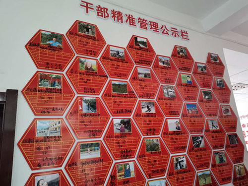 黨政辦公樓內(nèi)部,由幾十張黨員信息卡拼成的干部精準(zhǔn)管理公示欄貼滿整面墻壁。信息卡上,每名黨員的工作任務(wù)一目了然,更有民主評議分?jǐn)?shù)反映著不同黨員日常工作獲村民的滿意程度。