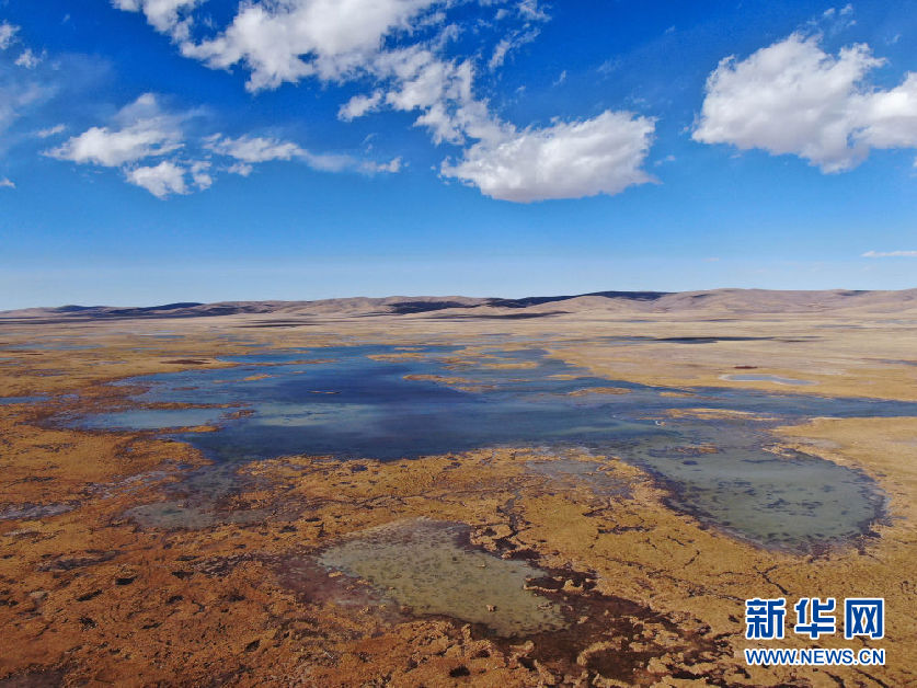 10月30日在青海省果洛藏族自治州瑪多縣境內(nèi)拍攝的一處濕地(無(wú)人機(jī)照片)。新華社記者 張龍 攝
