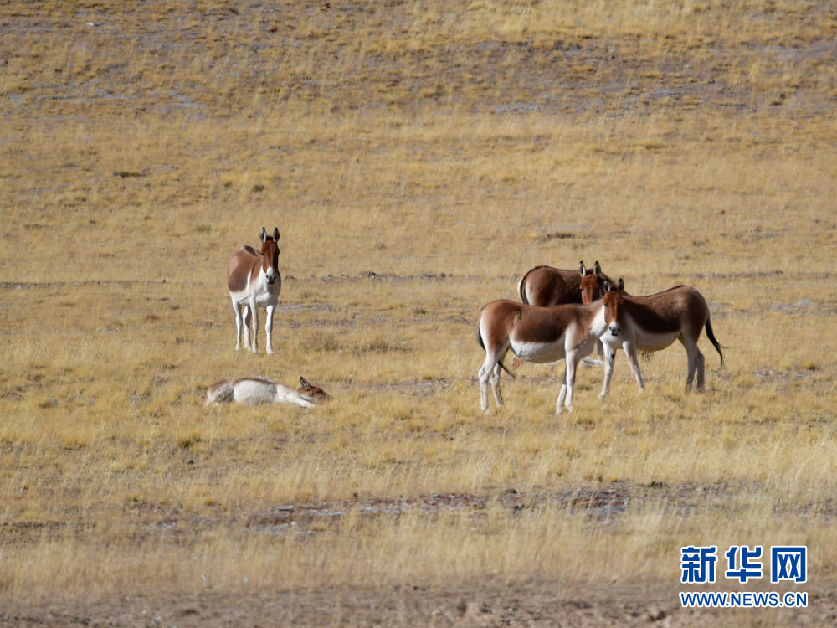 10月30日在青海省果洛藏族自治州瑪多縣境內(nèi)拍攝的一群藏野驢。新華社記者 張龍 攝
