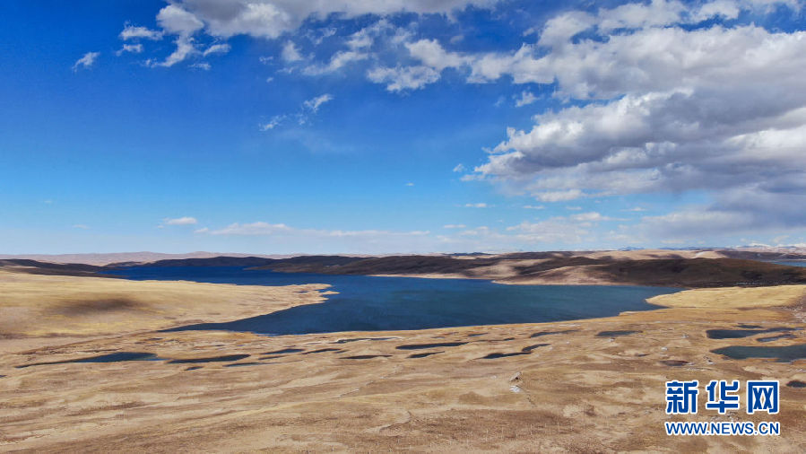 10月30日在青海省果洛藏族自治州瑪多縣境內(nèi)拍攝的一處湖泊(無(wú)人機(jī)照片)。新華社記者 張龍 攝