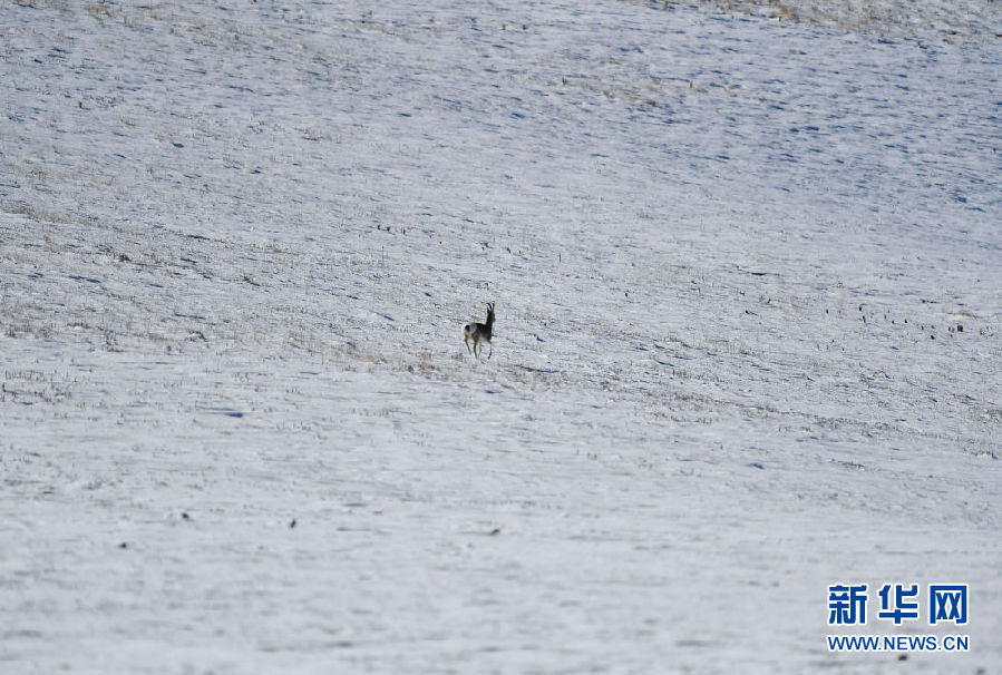 10月29日在青海省玉樹(shù)藏族自治州稱多縣嘉塘草原上拍攝的一只藏原羚。新華社記者 張龍 攝