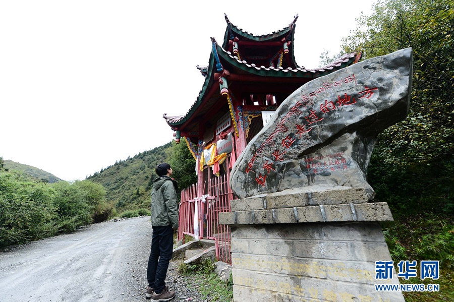 一位游客在瑪可河林場內(nèi)的紅軍溝駐足參觀。(資料圖)新華社記者吳剛攝