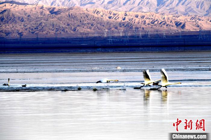 大天鵝飛抵柴達(dá)木盆地都蘭湖國家濕地公園“越冬”