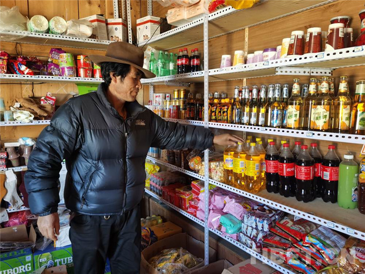 中國西藏網(wǎng)訊 12月11日,四川省甘孜藏族自治州理塘縣濯桑鄉(xiāng)漢戈村原貧困戶甲它一大早整理完大棚里的菜地,又忙著打理小賣部的貨物。