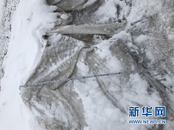 王飛騰團隊發(fā)現,“蓋被子”區(qū)域的冰體消融速度減緩?!啊w被子’的地方比不‘蓋被子’的地方冰的厚度高了一米,這高出來的一米就是‘蓋被子’的效果?!蓖躏w騰介紹。