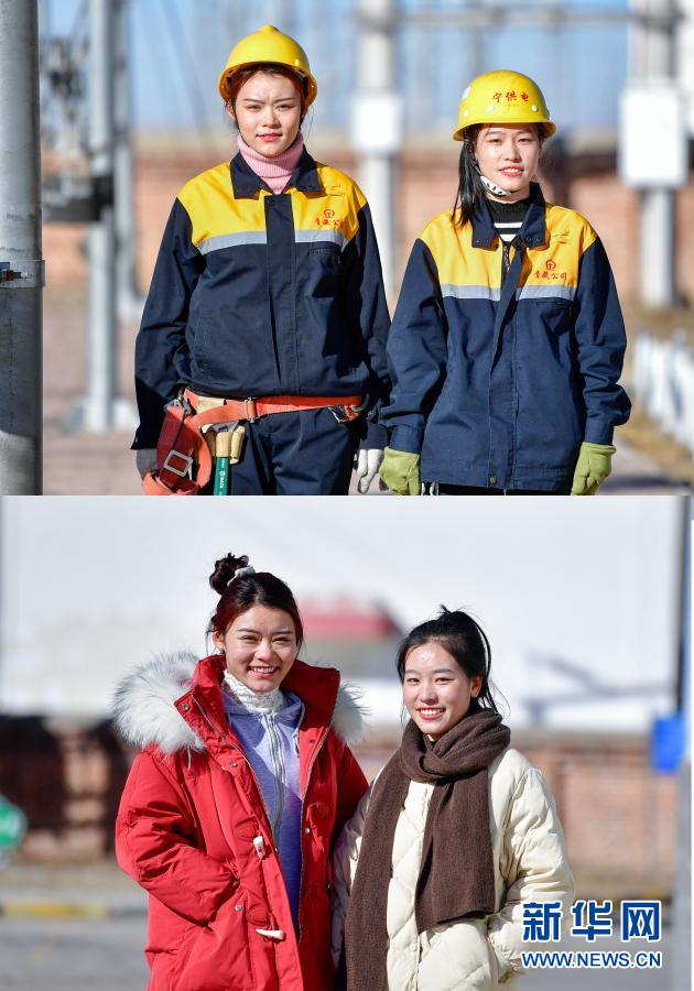 這是一張拼版照片,上圖為:羅露露(左)與郭勝強(qiáng)在工作前拍攝的合影(2月2日攝);下圖為:羅露露(左)與郭勝強(qiáng)在休息時拍攝的合影(2月2日攝)。新華社記者 張龍 攝