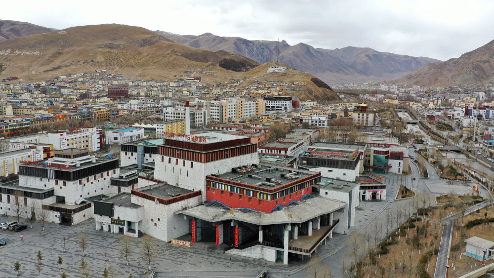圖為2021年3月10日拍攝的玉樹康巴藝術中心(玉樹地震前的結古鎮(zhèn)民族賓館)
