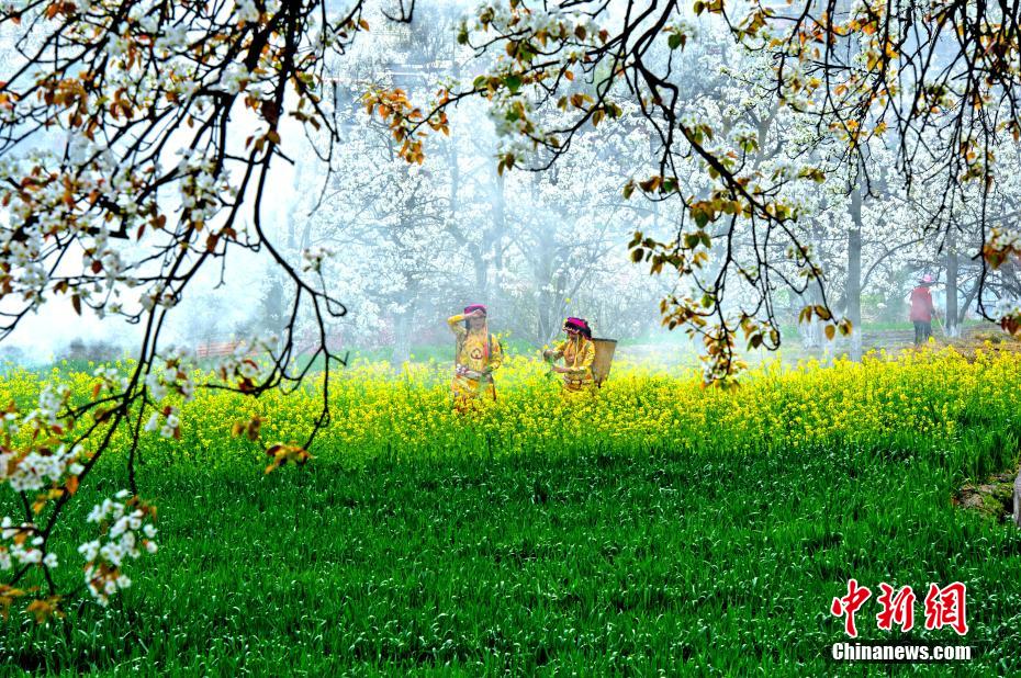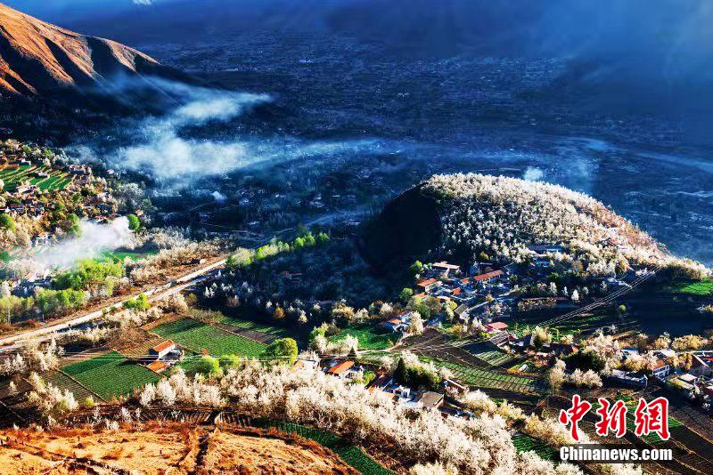 梨花叢中的村寨。 代永清 攝