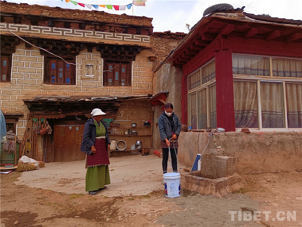 中國(guó)西藏網(wǎng)訊 3月21日,四川省甘孜藏族自治州理塘縣麥洼鄉(xiāng)埃地村村民澤仁志瑪吃完中午飯,又忙著打開(kāi)藏房邊的水龍頭,接水把家里衛(wèi)生收拾一下。