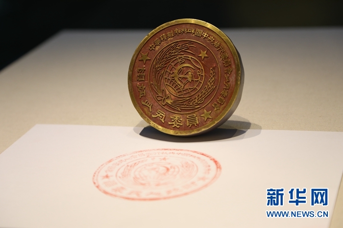 這是珍藏在甘肅省甘南藏族自治州迭部縣博物館內(nèi)的“中華蘇維埃共和國中央執(zhí)行委員會人民委員會財政人民委員”印章。新華社記者 馬莎 攝