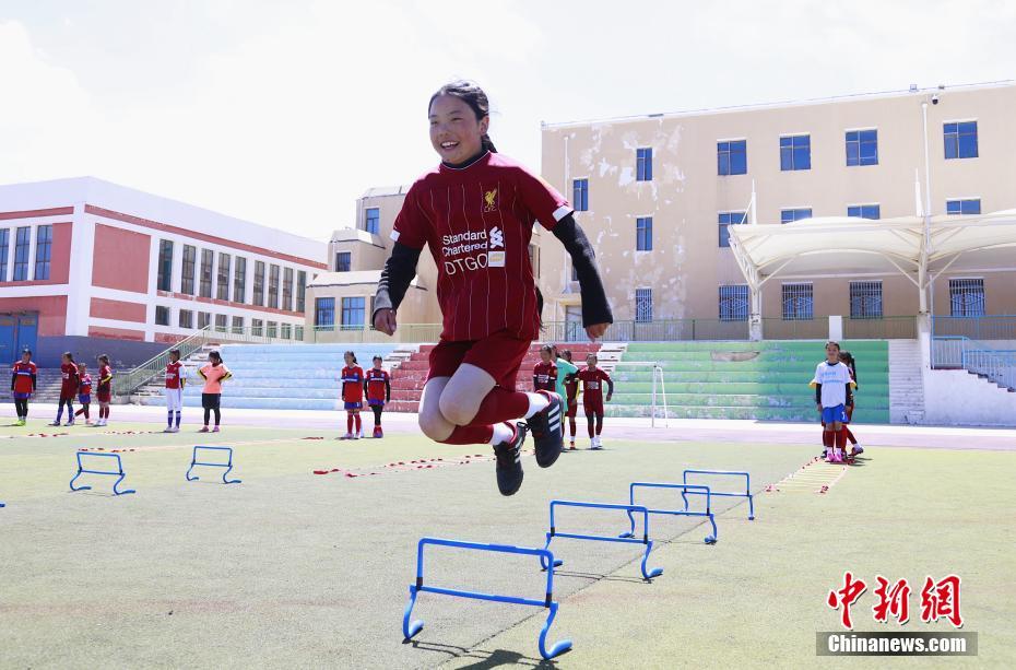 女子足球隊的隊員們正在進行訓練。教練多杰仁青介紹,孩子們的體能素質(zhì)都很好,足球訓練既培養(yǎng)了孩子們對足球運動的喜愛,也讓孩子們變得開朗和自信。中新社記者 馬銘言 攝